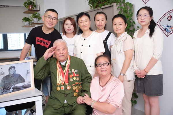 杭州市拱墅區通過開展走訪慰問、留存影像記錄等方式,銘記偉大歷史,弘揚抗戰精神,傳承愛國情懷。圖為拱墅區委老干部局慰問小組走訪抗日老英雄,聽老人講述烽火崢嶸歲月的抗戰故事。(杭州市拱墅區紀委監委供 駱少磊 攝)